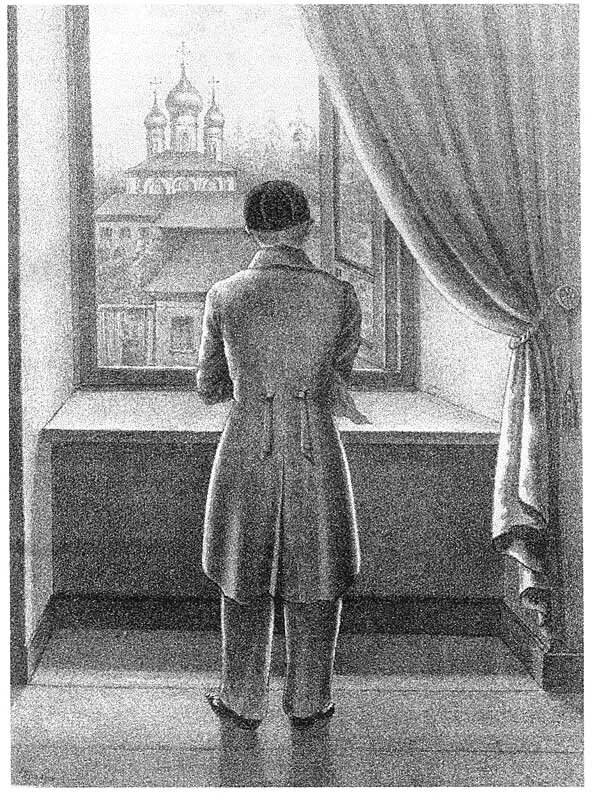 Современник поэта Н. В. Берг пишет, как однажды навестил К. Н. Батюшкова: «…(он) встал и начал ходить опять по зале; опять останавливался у окна и смотрел на улицу; иногда поднимал плечи вверх, что-то шептал и говорил. Его неопределенный, странный шепот был несколько похож на скорую, отрывистую молитву, и, может быть, он и в самом деле молился... В одну из таких минут, когда он стоял таким образом у окна, мне пришло в голову срисовать его сзади. Я подумал: это будет Батюшков, без лица, обращенный к нам спиной...». Берг нарисовал этот символический портрет отвернувшегося от мира Батюшкова. Это было уже в Вологде.