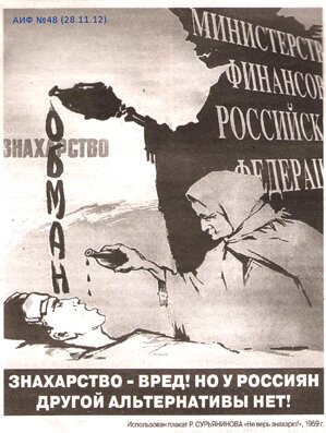 Следуя тенденции, остается предположить, что на очереди стоит внедрение такого института здравоохранения, как сельские бабки-повитухи и деревенские знахари-колдуны. Впрочем, об этом нас уже предупредили «Аргументы и факты» (28.11) (см. выше).
